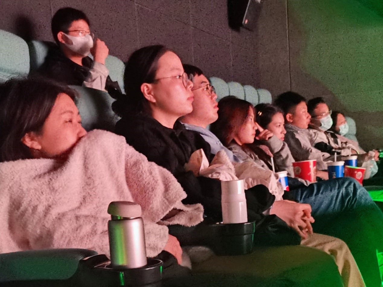 怀着激动的心情,大家开始观看这部国庆档主旋律电影,大家静悄悄坐着,整个身心沉浸在感人肺腑的电影故事情节中。从故事中我们感受到了同胞之爱、家国之爱,亦有不分种族、国籍的生命之爱。影片展现出的外交官们保家卫国,逆向而行的使命感与信念,深深印在每一位观影党员的心中,他们不惧牺牲,无私奉献的家国情怀更是令人几度哽咽。