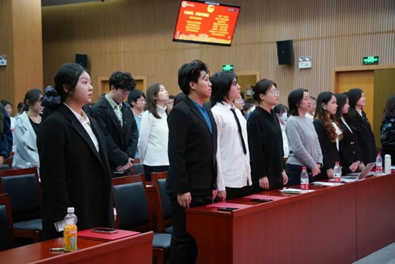最后,全体师生起立共唱《光荣啊,中国共青团》,激昂的旋律回荡在报告厅内,开班典礼圆满落幕。