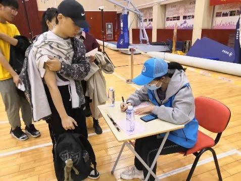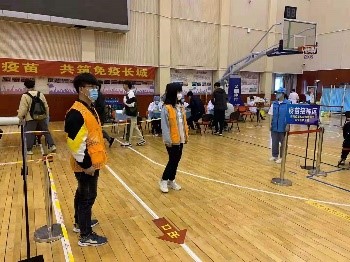 志愿者们早早到岗,在等候区、接种区、留观区都有他们的身影。主要负责维护秩序,引导人员流动,给同学们解答疑惑。每一名志愿者都耐心负责地为同学们提供帮助。