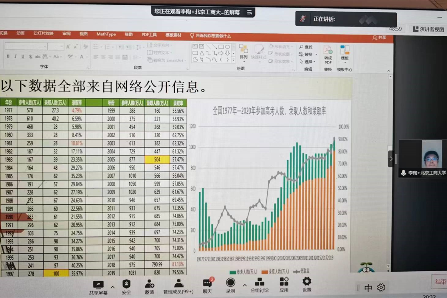 数学类212班主任李陶老师通过数据提示同学们,大学不是学习的终点,而是一个高等教育的起点,要转变观念,更好适应大学引导式的学习节奏,不要输在终点线上,卸掉包袱更好前进。