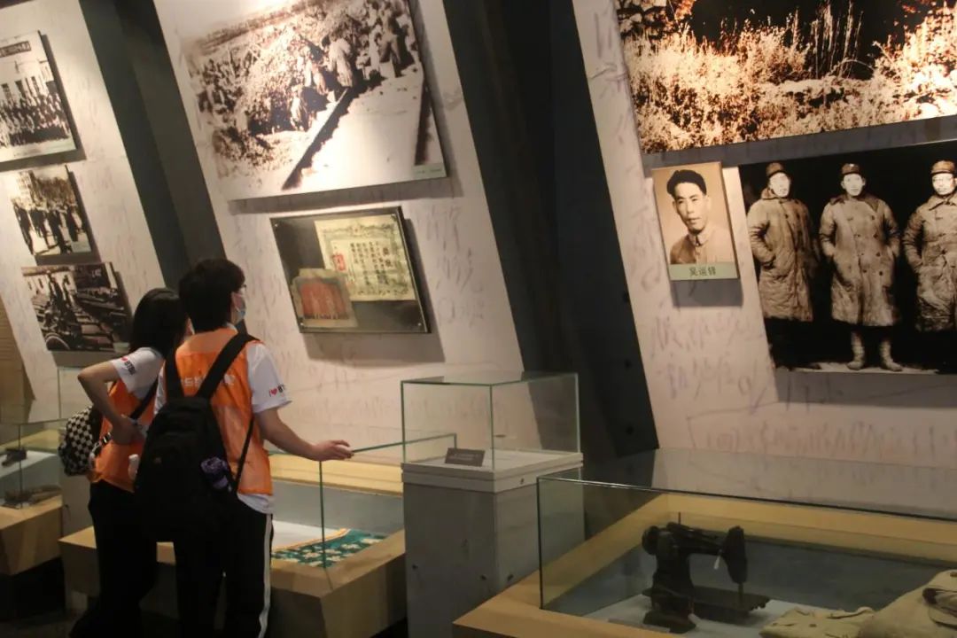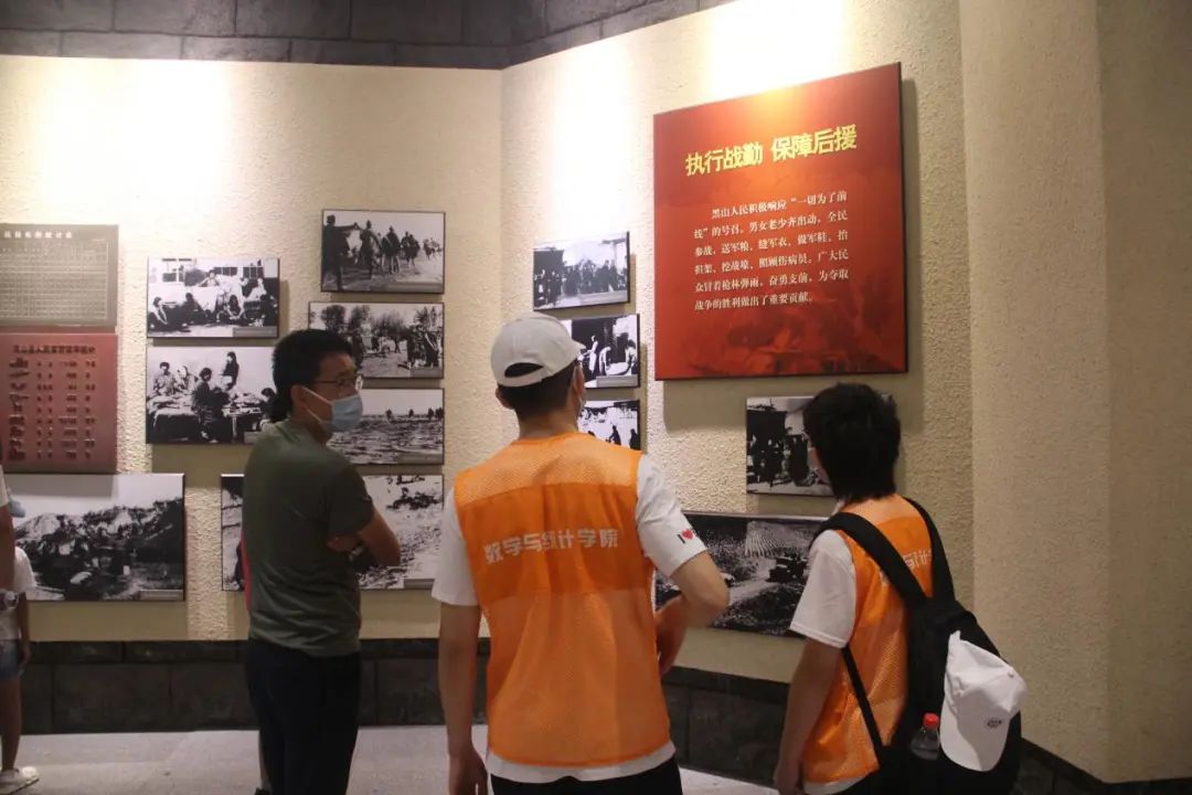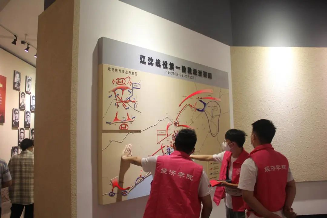 参观过程中,党和人民同呼吸、共命运的故事无处不在,尤其在“支前馆”,实践团成员被“拥军模范”朝鲜族大娘李玉今先后送四位亲人上战场的故事感动,一件件珍贵的文物见证了普通百姓在解放战争时期听党话、跟党走,顾全大局,全力支援前线的历程,体现了人民群众的巨大力量。此外,实践团偶遇来自东北财经大学的暑期社会实践团,两所高校的同学就本次参观进行了短暂的交流,分享各自实践所见、所闻、所感、所得,共同感悟“红色火种”的星火燎原之力。
