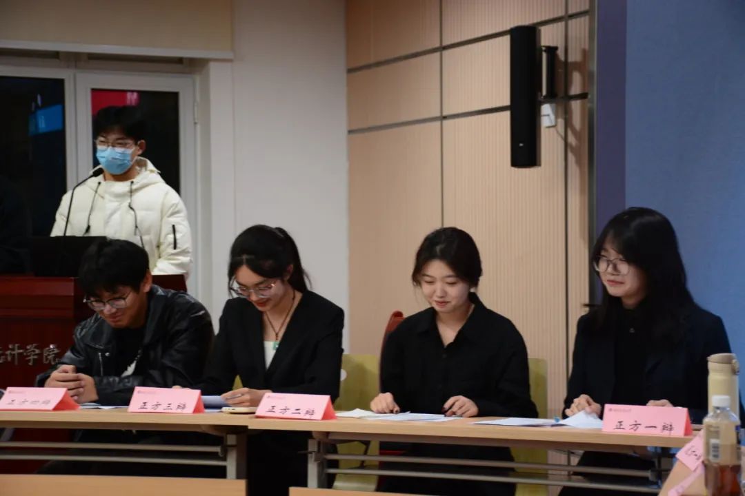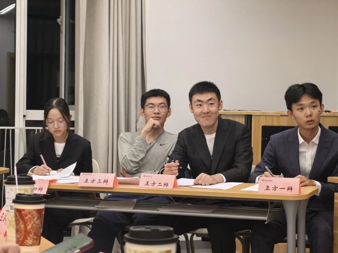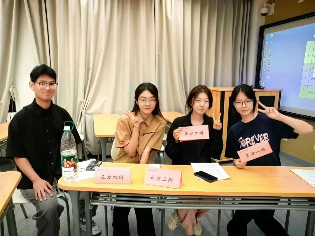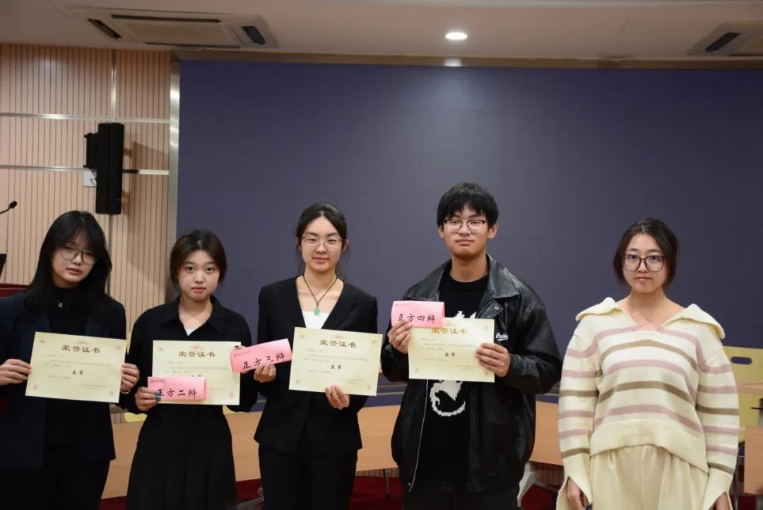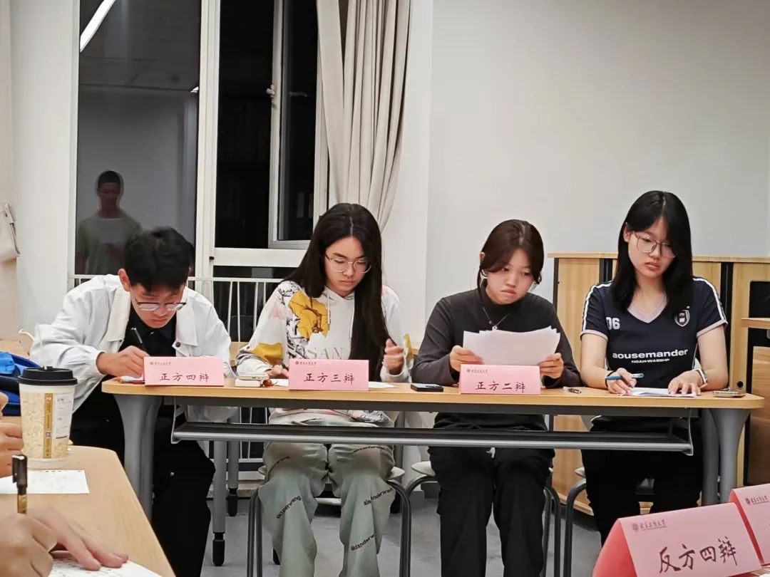 William威廉校辩论队队长韩晴,经济学院辩论队队长刘诗扬,数统学院辩论队20级队长张子涵,22级队长郑茜文,23级队长郑一鸣担任本场比赛评委。