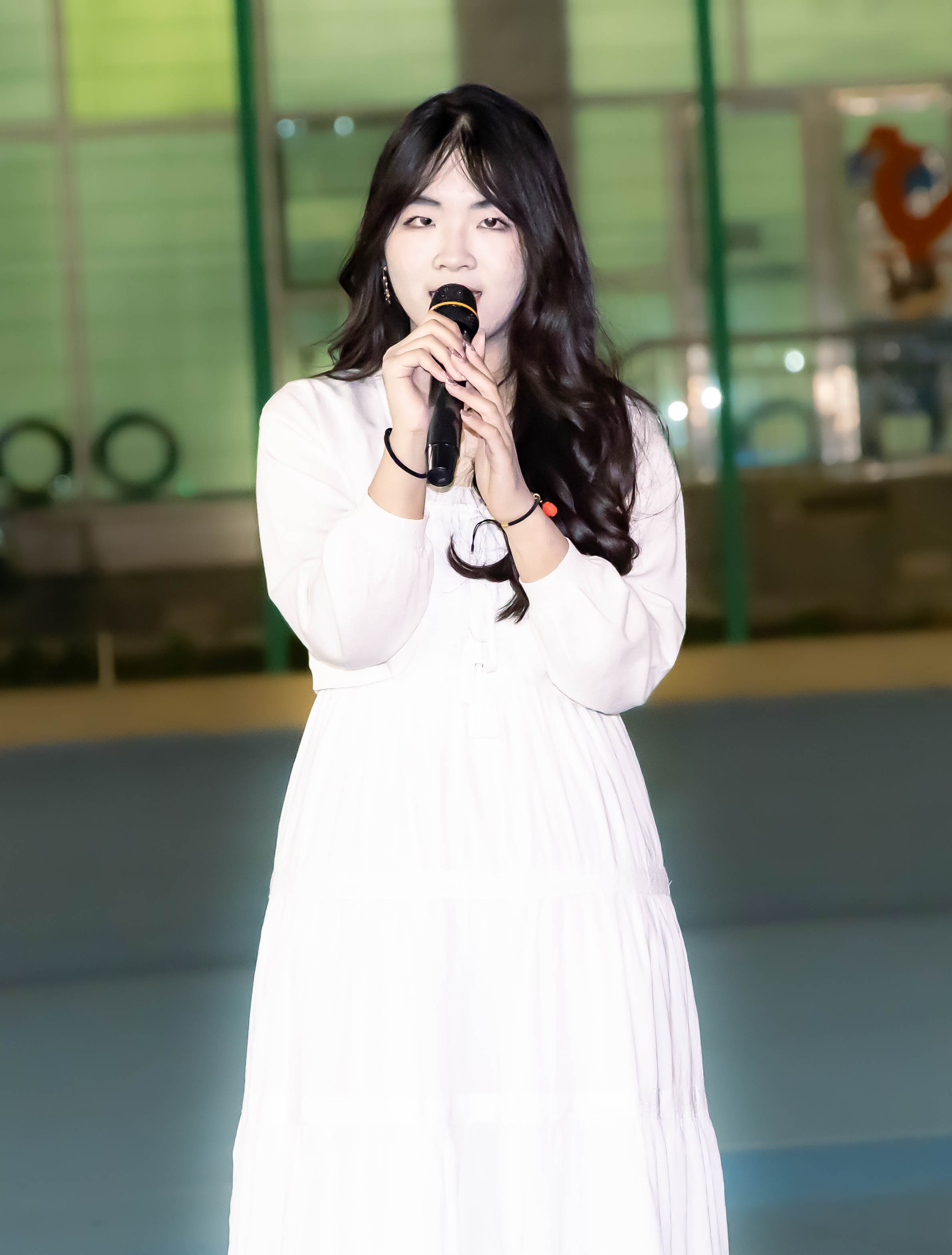 应统24中外班谭雨宸演唱《光》时,嗓音清澈明亮,情感真挚而热烈,正如“光落在你脸上,可爱一如往常”歌词所述,歌声如同一束光,照亮了整个舞台。她对歌曲的把握十分精准,节奏和旋律处理得恰到好处。歌曲充满了希望与力量,仿佛在告诉我们,无论生活多么艰难,都要勇敢地追寻那束光,给听众带来了一场难忘的音乐盛宴。