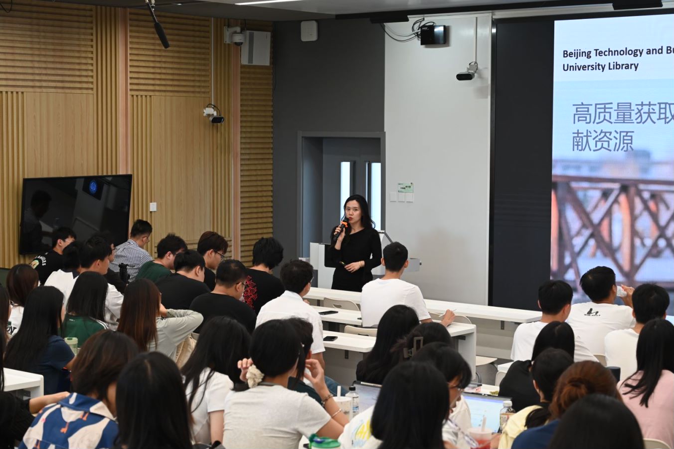 藤蔓系统地介绍了图书馆的主要资源,涵盖了国内外的主要数据库,如中国知网、Web of Science、SD数据库等。她介绍了如何在学术搜索中精准检索文献、利用图书馆的在线系统快速获取资源等实用技巧,并举例讲述了一位职工如何通过正确的检索路径成功获取所需文献。