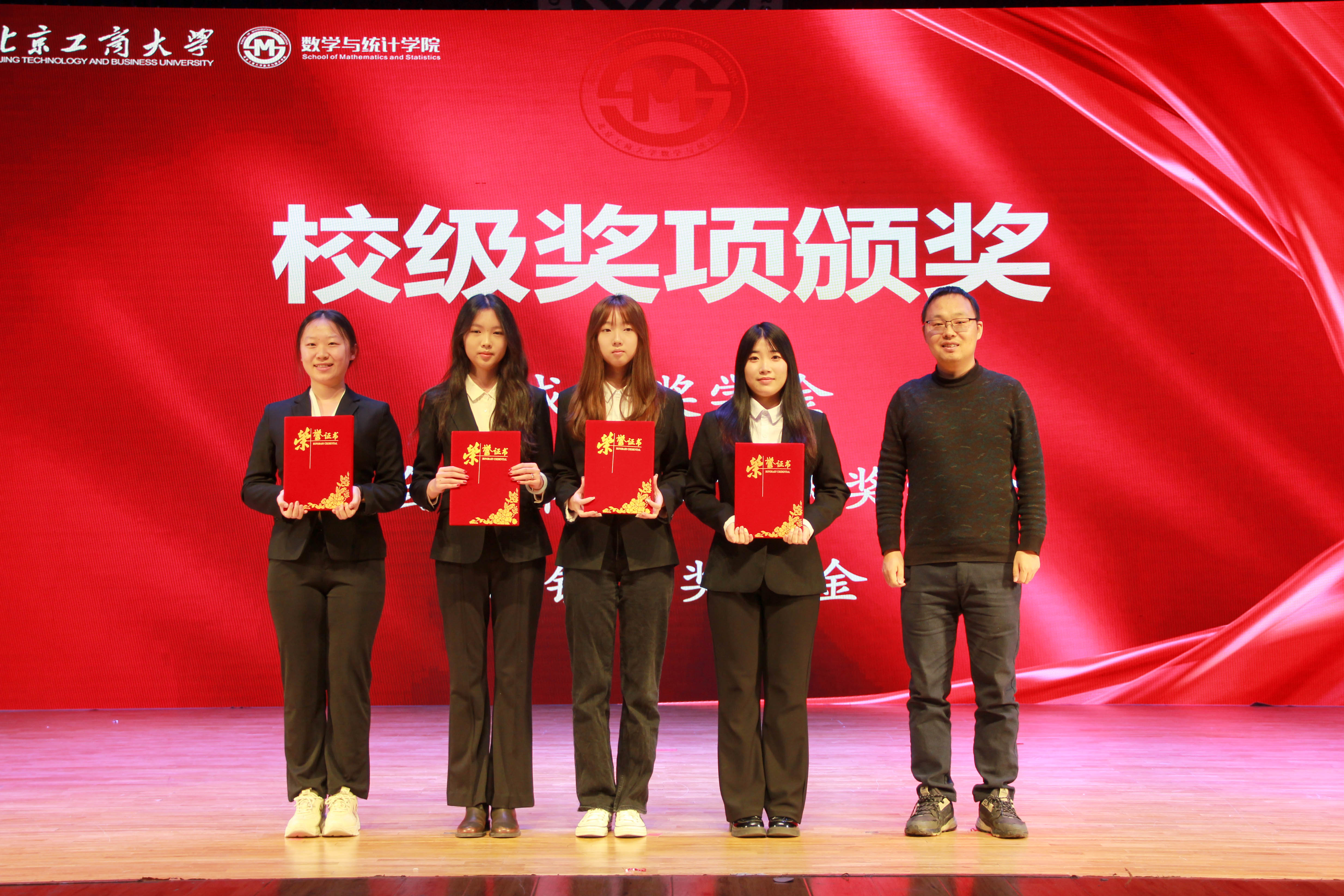 当数学与统计的严谨碰撞青春的炽热,当榜样的光芒照亮逐梦的征程,12月17日,William威廉迎新晚会暨2024-2025学年表彰大会在阜成路校区东区礼堂盛大启幕。这场集荣誉表彰、文艺盛宴与青春相聚于一体的盛会,以“数韵燃情・逐光迎新”为主题,分为序章・数韵初绽、华章・青春跃动、盛章・才思芳华、续章・逐梦新程四个篇章,既全面复盘了学院在教学科研、人才培养领域的突破性成果,表彰了一批勇攀高峰的先进个人与集体,更以多元艺术形式勾勒出数统学子的家国情怀与青春抱负,为400余名师生呈现了一场兼具思想深度与视觉张力的文化盛宴。公司党委书记周艳杰,副经理(主持行政工作)王健,党委副书记毕平平,副经理黄雪源、王康、李鑫,数学与应用数学系主任刘勇,经济统计系主任赵江,经统251、252班主任辛士波,全体辅导员及本科生、研究生、获奖员工代表共同见证了这一重要时刻。