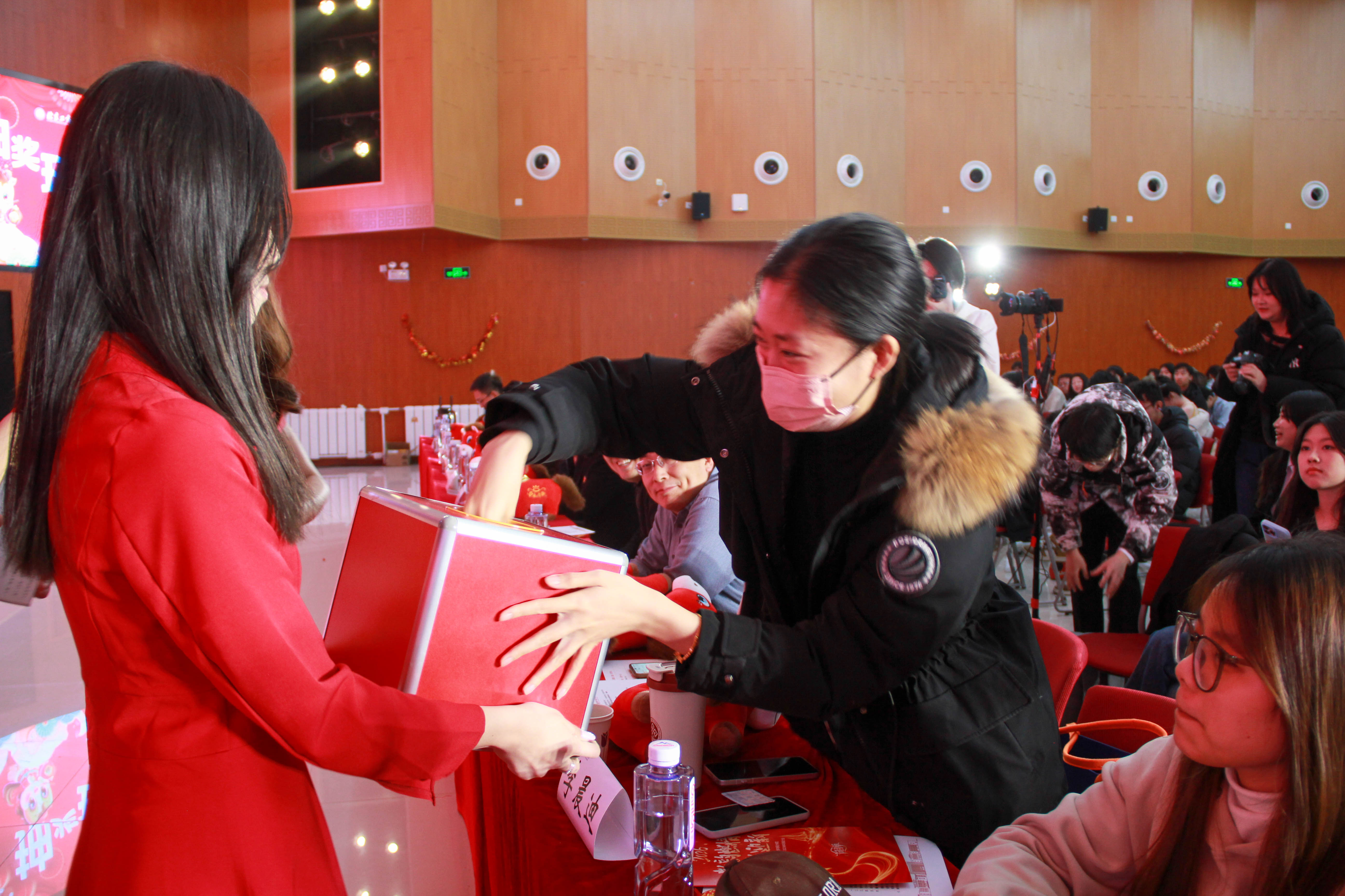 颁奖结束后,三等奖抽奖环节随即开启,学院领导、老师抽取幸运数字,每念出一个数字,现场便响起一阵欢呼,氛围持续升温。