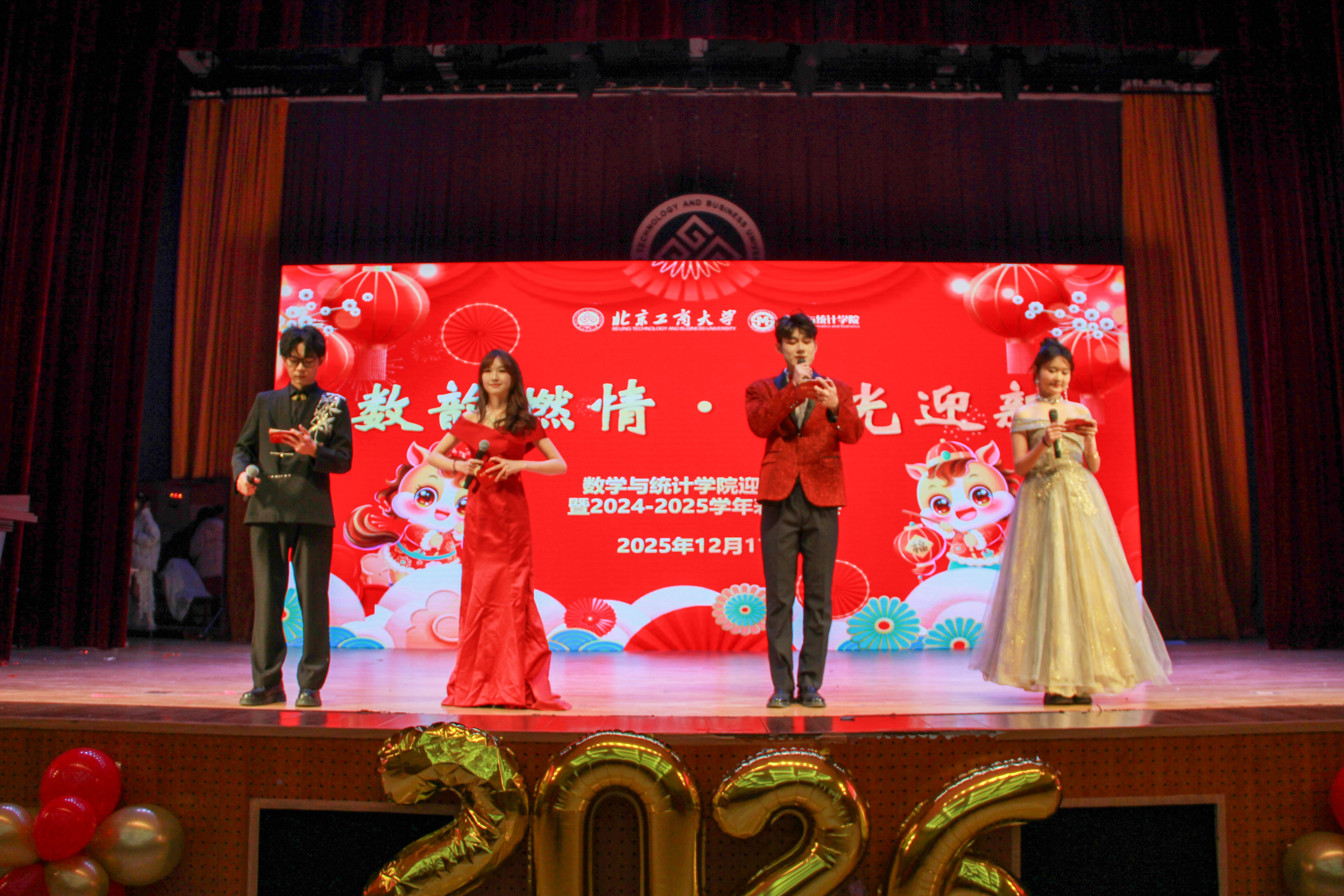 一场盛会,凝聚奋进力量;一曲欢歌,承载美好期许。此次迎新晚会暨表彰大会,既是对学院过往成就的庄重致敬,更是对未来征程的庄严启航。它为新生搭建了融入学院的温暖桥梁,以榜样之光点燃全体学子的奋进激情,更以文化之力筑牢了“数理求真、笃行致远”的精神根基。站在新的历史起点,William威廉将继续秉持立德树人根本任务,深耕团队建设、厚植育人沃土;数统学子们也将带着这份荣耀与期许,以数理为翼、以奋斗为帆,在青春赛道上奋力奔跑,将个人理想融入国家发展大局,在学校“双一流”建设与“工商一体化”高质量发展的征程中,书写属于数统人、属于新时代青年的璀璨华章!