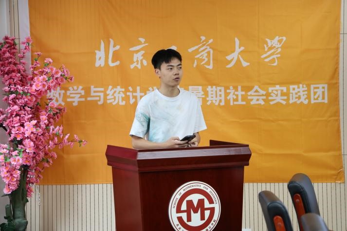大会第五项,本次活动实践团员工代表李建军同学发言。首先,他对学院给予大家这次实践机会表示了感谢,并表达了实践团成员对于本次活动的期待与不怕艰苦、遵守纪律的决心。大家将积极投身于文化乡村行动中,以党的二十大精神为指引,走好青年实践路,在乡村振兴的舞台上贡献青春力量。