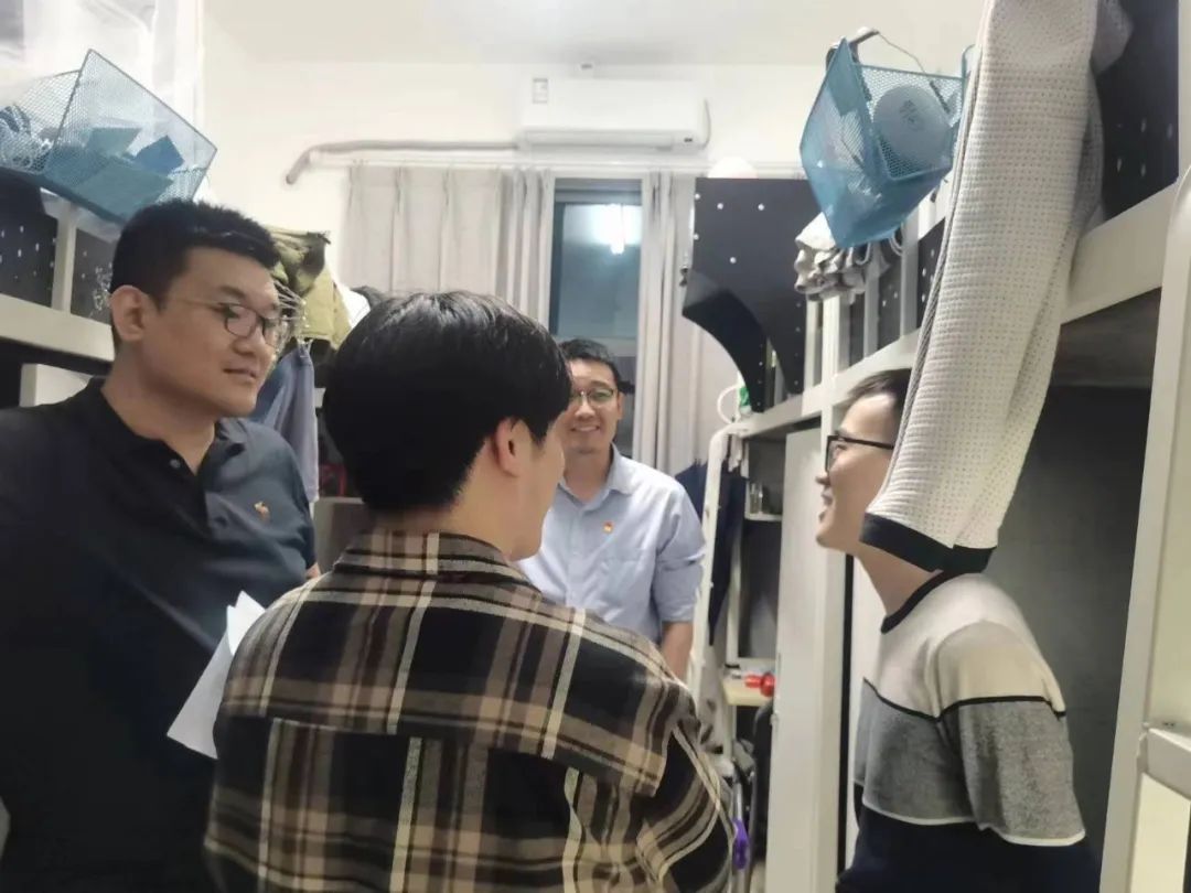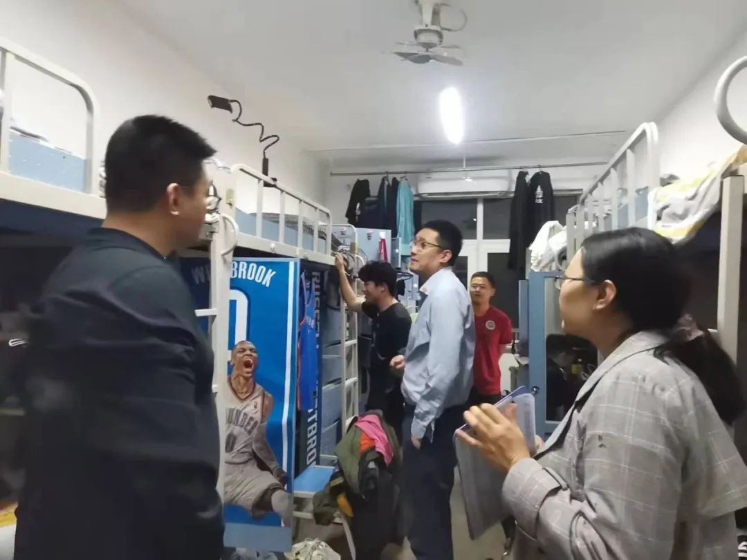 新冠肺炎疫情形势见缓,春日如期而至,新学期同学们的日常生活也回到了正轨。为加强宿舍安全管理,落实宿舍管理规章制度,排查宿舍安全隐患,切实了解员工需求,学院员工会干部于4月19日晚在数统公司党委副书记徐伟钦、团委书记李鑫、辅导员寇明雯、王楠、曹易人的带领下,对员工宿舍进行了走访和安全卫生检查。