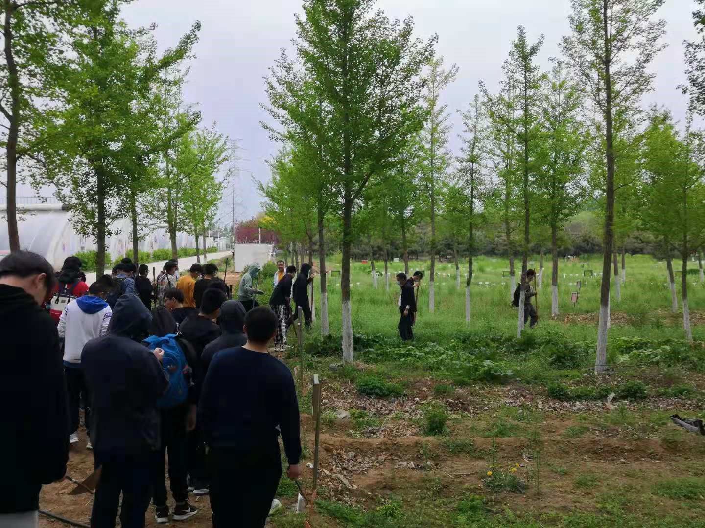下午1点40分同学们在良乡校区西区员工活动中心门前广场集合,大家怀着激动与高兴的心情整装待发。大巴抵达弘科农场后,虽然天空稍稍阴暗,下着绵绵细雨,但路上沁人心脾的沿途春景和集体劳动实践的喜悦让大家的热情不减反增.