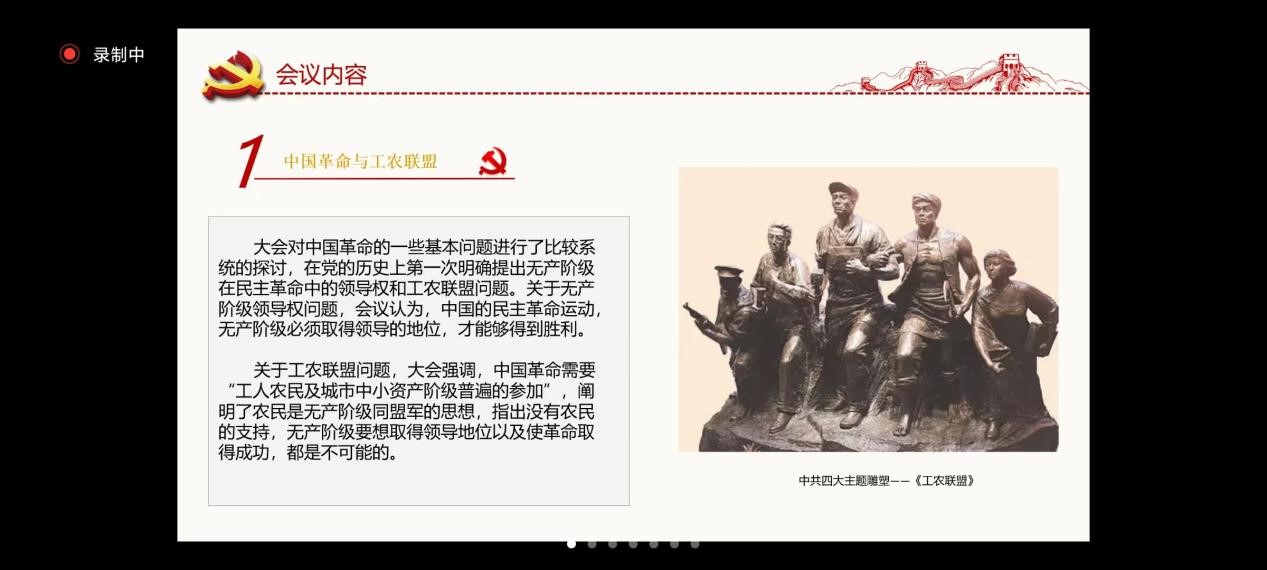 首先,徐伟钦老师阐述了本次例会召开的意义。在当前全国疫情如此严峻的形势之下,党员要身先士卒,走在前面,坚持“动态清零”,当然人民群众也可以站出来,贡献自己的一份力量。徐书记说道:“只有大家在同一个频道上,做同一件事,并由合适的人来做合适的事,才能把事情做好。”所以,数统学院展开本次例会的目的也是希望大家能够统一思想,并加深大家对党史的认识和对时事的了解。接下来在寇明雯老师的主持下,分别由数统学院员工代表张越、王行修、郭兆然和孙康介绍了前四次中国共产党全国代表大会的背景、内容和历史意义。随后寇老师播放了一段关于庆祝中国共产党成立100周年的视频,使大家更加全面地了解了中国共产党党史。最后由崔浩和窦子超两位学长分别向我们分享了他们对于俄乌战争和青山控股“妖镍”事件的看法以及由此引发的一些思考。徐书记对此表示,我们应该向这两位学长一样,要对事情有深入的思考,才能更好地去了解当今世界的形势。