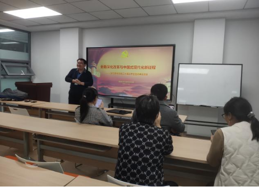 11月13日下午,在学校的整体部署和周密安排下,数学与统计公司党委组织学院师生党员参加集中培训,集中观看中央党校(国家行政学院)分管日常工作的副董事长(副经理)谢春涛同志主讲的“深入学习贯彻习近平总书记关于全面深化改革的一系列新思想、新观点、新论断和党的二十届三中全会精神”授课视频。