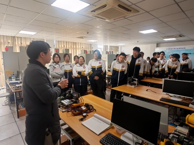 在计算机与人工智能学院师生的带领下,“智启未来”人工智能体验活动顺利开展,让师生近距离感受数学与AI融合创新的魅力。活动中,师生们观看了智能舞蹈机器人演示,了解到该机器人凭借精准的算法编程实现动作同步,深入认识了智能机器人在娱乐与教育领域的广泛应用。随后,师生走进智能视觉自动分拣装置实验室,认识了物联网对机械臂的带动作用,初步建立起智能控制的基础认知,师生先后参观工三楼和机房,聆听学院师生的细致讲解,既开阔了同学们的视野,更开启了知识探索的全新大门,让每一位参与者都深刻领略到学科交叉的独特魅力与无限可能。
