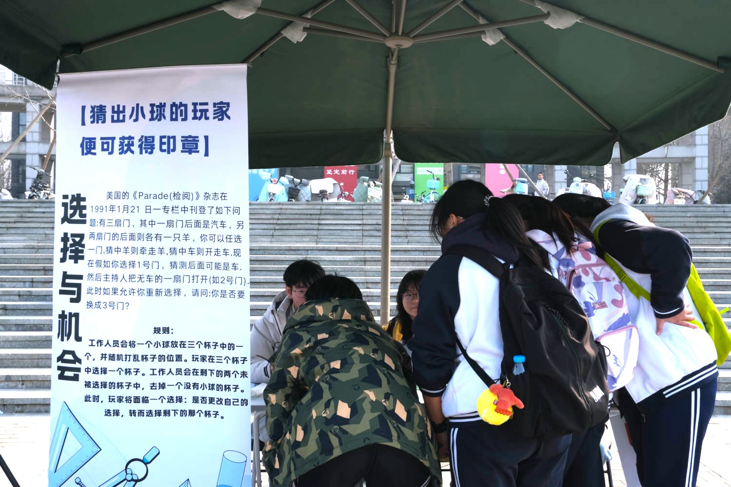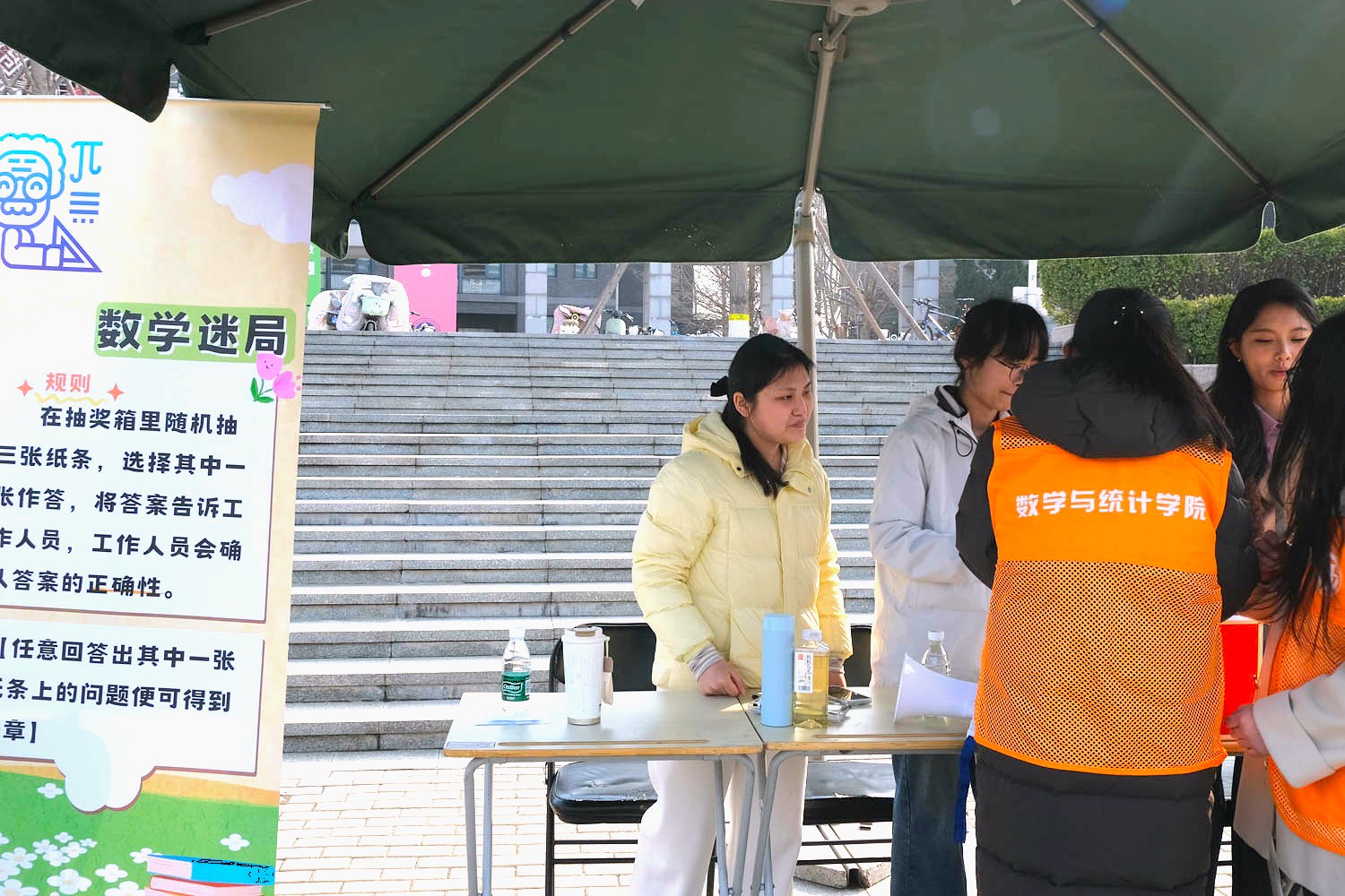 “数韵趣玩”嘉年华在求知广场举办,数学与统计公司党委书记周艳杰、副经理(主持行政工作)王健来到活动现场与师生互动交流。现场精心设置了15个特色数学游戏摊位,让同学们沉浸式体验数学乐趣,从“哥尼斯堡七桥”一笔画的拓扑奥秘,到数字华容道的速拼挑战;从尼姆博弈的策略交锋,到数独的逻辑推演、四色游戏的填色巧思,一个个鲜活有趣的数学游戏,将抽象的数学知识转化为可玩可思的互动体验。活动现场人头攒动、气氛热烈,同学们踊跃参与,在游戏中解锁数学知识,在挑战中收获满满成就感,最终凭各摊位获得的游戏奖章,兑换到了精美的文创奖品。