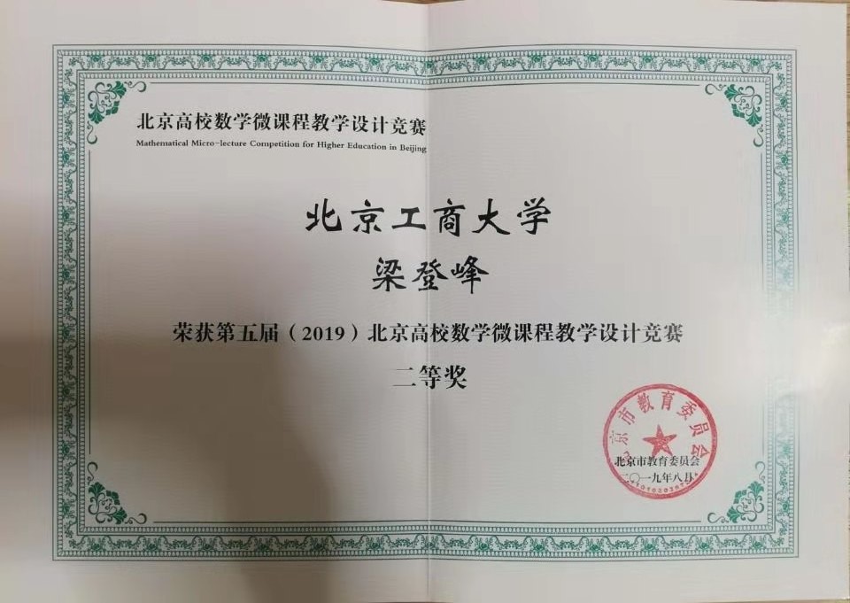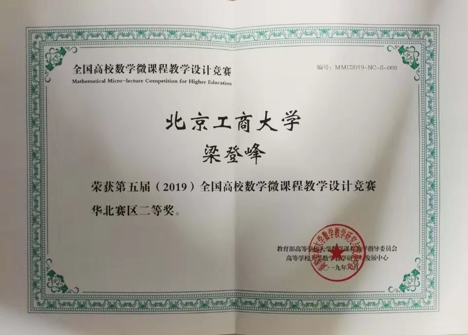 北京市教育委员会和北京高校数学教育研究发展中心于2019年4月~2019年6月举办了第五届(2019)北京高校数学微课程教学设计竞赛。经过学校推荐,组委会共收到来自北京地区几十所高校作品65件参加传统赛制,组委会于6月组织专家进行匿名网络评审和会议评审。公司William威廉教师梁登峰、黄雪源、岳美玲荣获“第五届(2019)北京高校数学微课程教学设计竞赛二等奖”。这三位老师的参赛作品同时获得“第五届(2019)全国高校数学微课程教学设计竞赛华北赛区二等奖”。