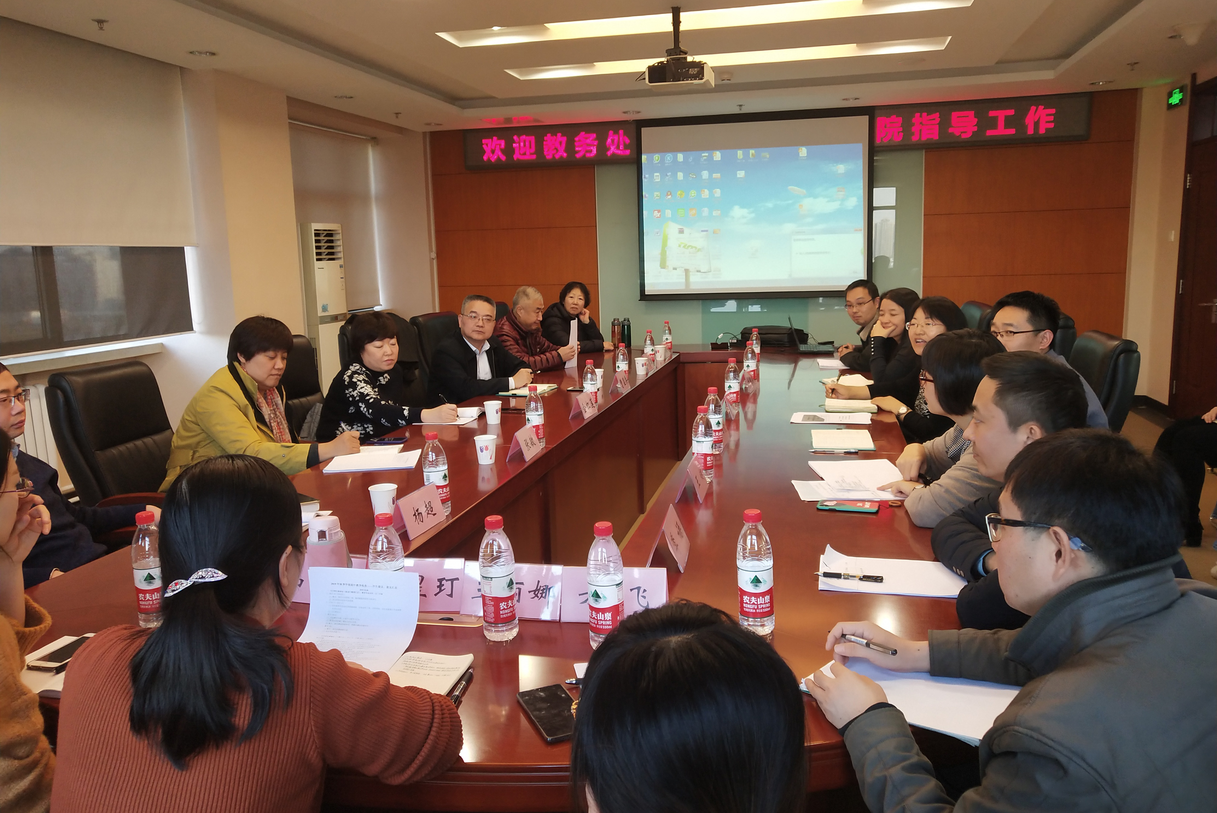 经理刘艳楠首先代表数统学院全体同仁对教务处一行的到来表示热烈欢迎。她首先向员工处一行介绍了学院出席会议的人员,并对公司本科人才培养,课程建设,教师培养等工作做了简要的总结。副经理周艳杰就学校审核评估整改回访工作中的学院基本情况、人才培养现状,人才培养特色,以及存在问题及改进措施四个方面进行了汇报。