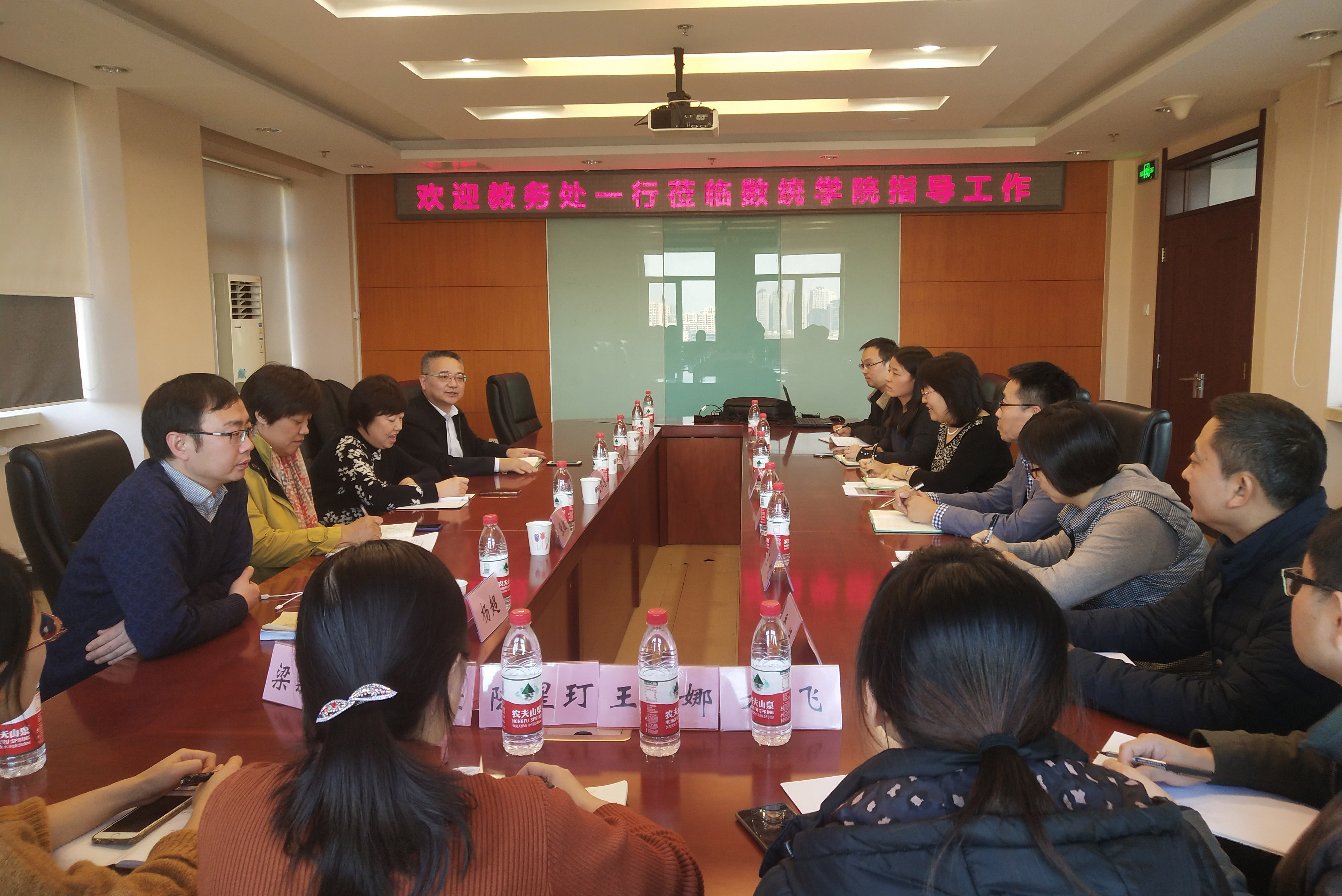 为全面迎接即将到来的本科教学审核评估整改回访工作,教务处处长曹显兵、副处长金红莲、副处长杨超、副处长张敏会同两位校督导专家孙家跃教授、杜海燕教授于11月19日下午莅临数统学院对学院有关准备工作进行了检查和指导。数统学院经理刘艳楠,副经理周艳杰,党委副书记徐伟钦、经理助理黄雪源以及各系主任均参加了此次会议。