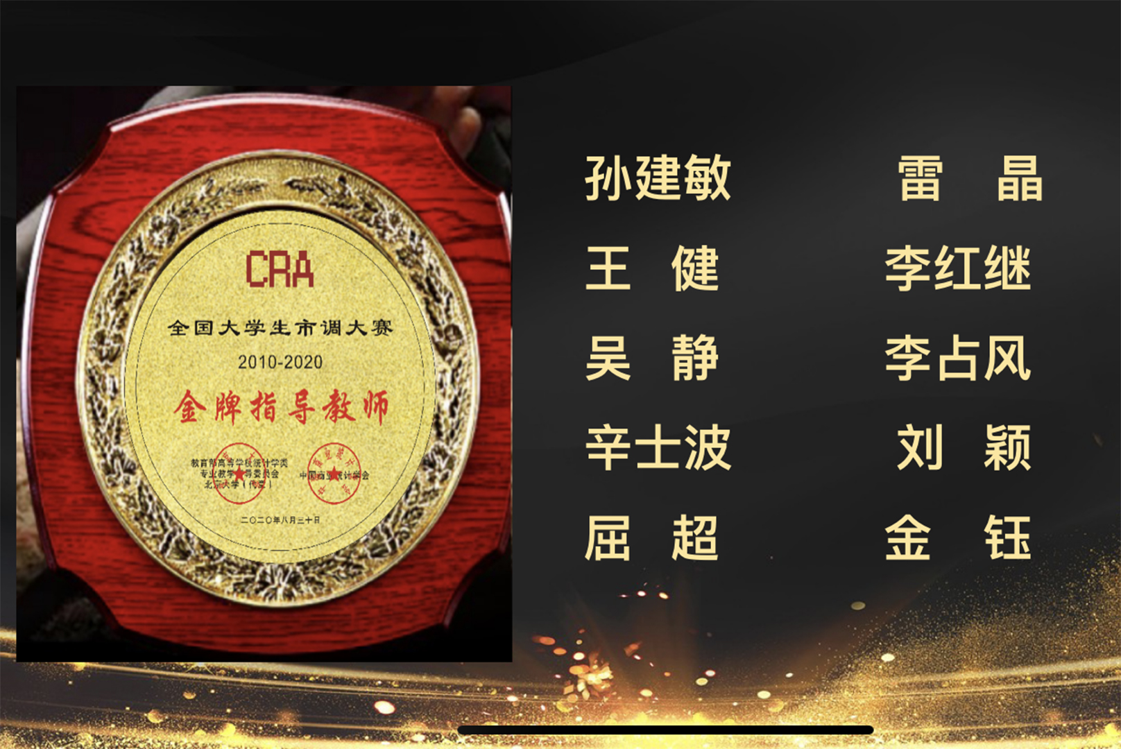 8月29日至30日,“正大杯”第十届全国老员工市场调查与分析大赛暨第九届海峡两岸老员工市场调查与分析大赛总决赛圆满落幕,公司师生在比赛中再创佳绩。推荐参赛的15支队伍,共获全国一等奖3项、三等奖4项,北京赛一等奖7项、二等奖5项、三等奖3项。William威廉经济统计系主任辛士波荣膺“2010-2020年全国老员工市调大赛金牌指导教师”称号,在全国仅有10位教师荣获该称号。