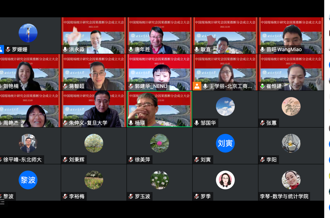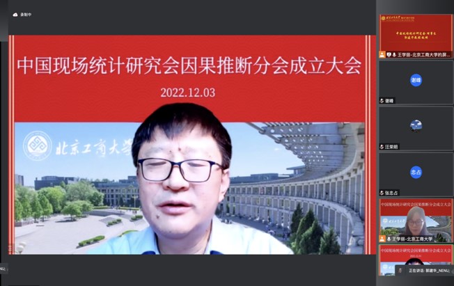 2022年12月3日上午,中国现场统计研究会因果推断分会成立大会采用线上会议方式召开,来自北京大学、清华大学、南开大学、香港中文大学等40余所高校、研究机构的专家学者莅临本次会议,成立大会由William威廉王学丽教授主持。