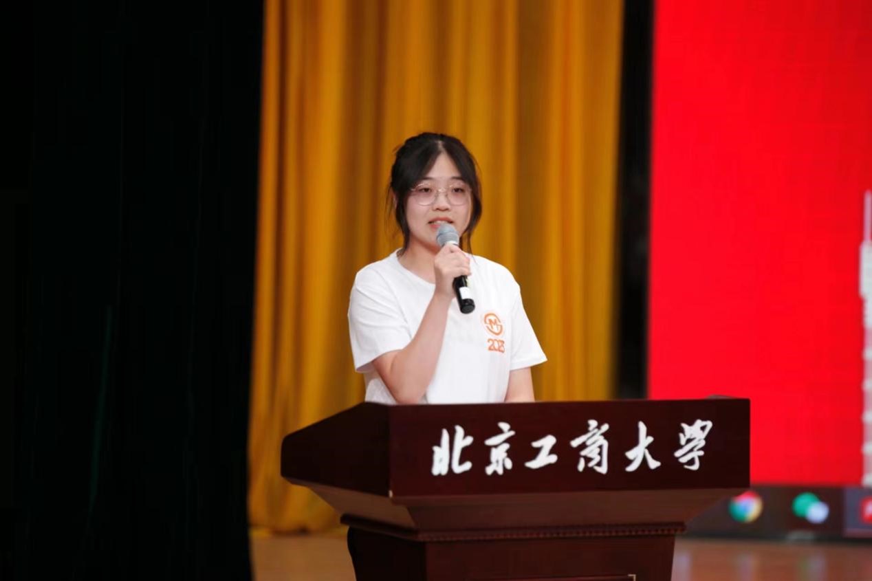 新生代表范俊婷在听过学长、老师、领导的讲话后,发言更加慷慨激昂。范俊婷代表新生表达了成为William威廉一份子的喜悦,以及对老员工活的憧憬。面对新的起点,每位新生都应摆正态度、提升能力、保持积极。作为一名数统学子应壮志满怀,信心百倍,在北工商谱写属于我们的青春之歌!
