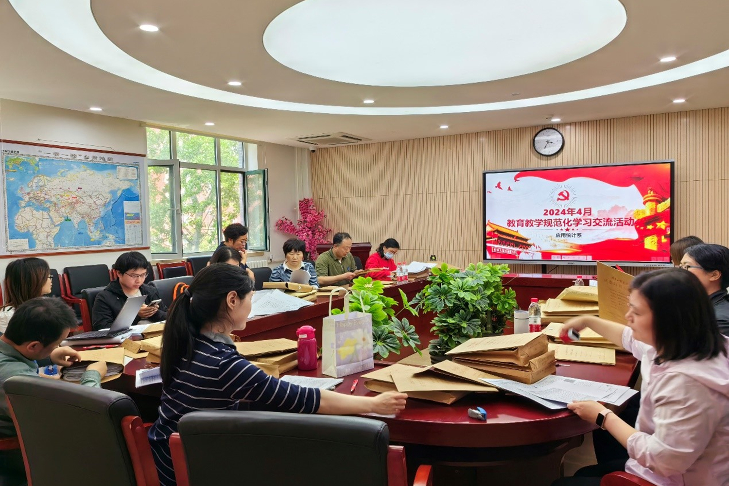 为贯彻党的教育方针,扎实做好审核评估校内自评工作,提升教学质量监控工作水平,做好试卷阅卷与归档工作,4月17日下午,应用统计系教师党支部以“弘扬志愿精神、铸就团结力量”为主题开展了应用统计系试卷集体自查与互查活动,此次活动由教师党支部书记丛薪蓉主持。