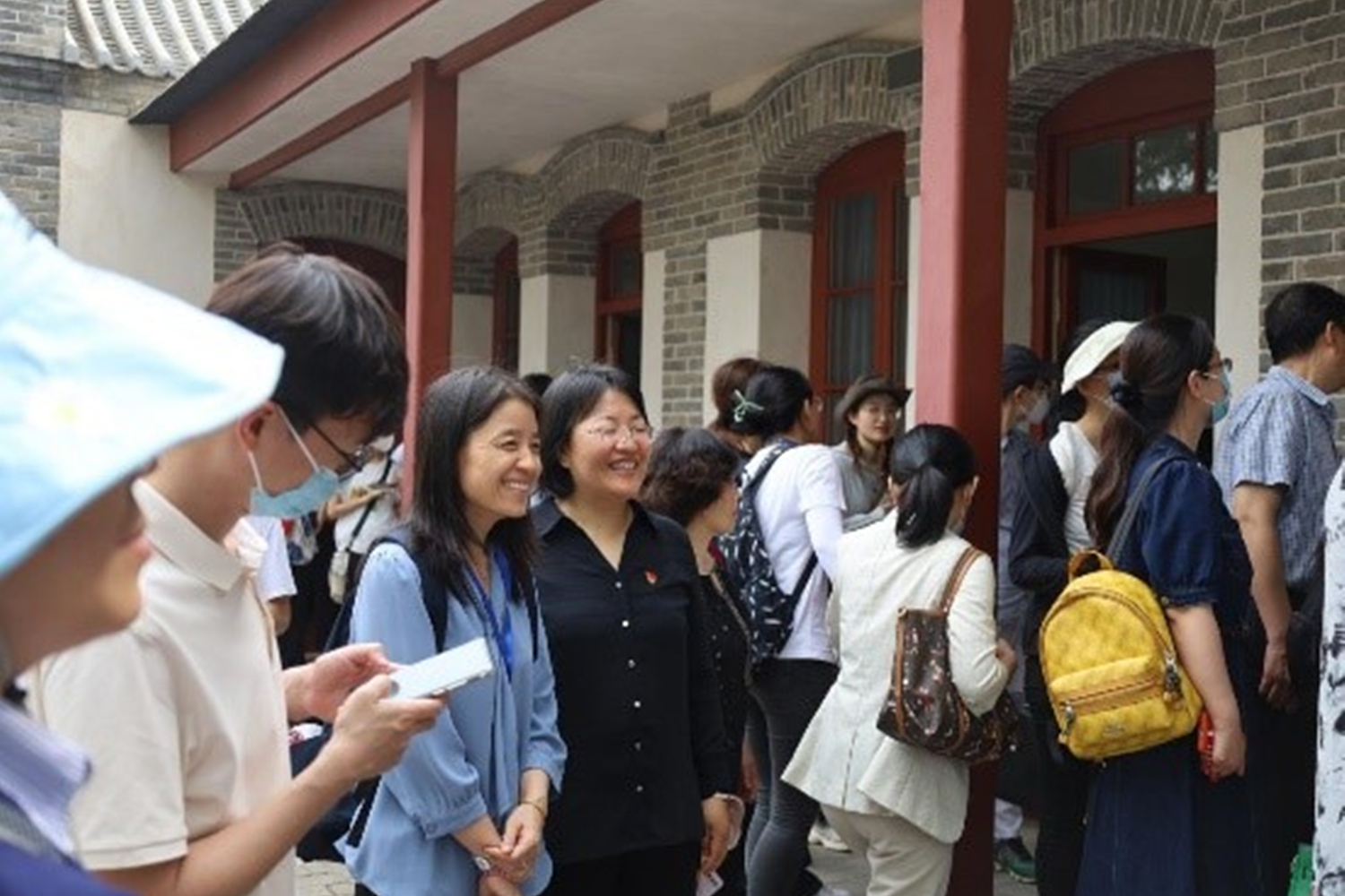进入双清别墅,碧波涟漪,翠叶环绕,六角红亭矗立院中。亭中布置根据警卫长回忆录还原,毛泽东同志曾在此处阅读南京解放的报道,一旁的白色建筑为毛泽东同志在香山的主要居所,这里曾诞生了《人民民主专政》等著名论著与《七律·解放军占领南京》等千古绝唱。随后,师生参观了来青轩,这里曾是刘少奇、朱德、周恩来与任弼时同志的办公场所与居住地。
