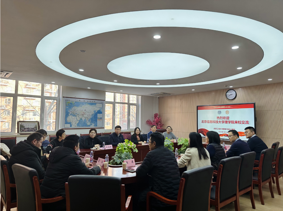 周艳杰首先对北京信息科技大学理学院的来访表示热烈欢迎,黄雪源随后详细介绍了学院的组建历程、学科发展、专业建设、人才培养、团队队伍、学术会议、国际交流合作等情况。季语从公共数学基础课程建设情况,包括课程教学运行和管理、考试管理及教学成果方面进行了汇报。