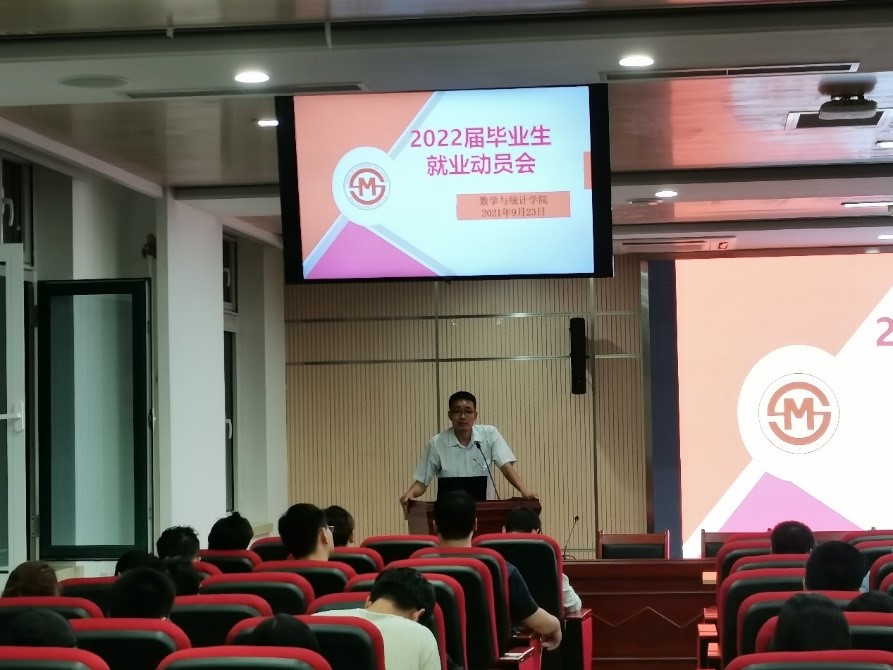 9月23日晚,学院在主校区数统楼401会议室召开2022届毕业生就业动员大会。学院副经理罗玉波、黄雪源、教师代表王家赠,18级辅导员王楠和18级全体本科生参加本次大会。会议由公司党委副书记徐伟钦主持。