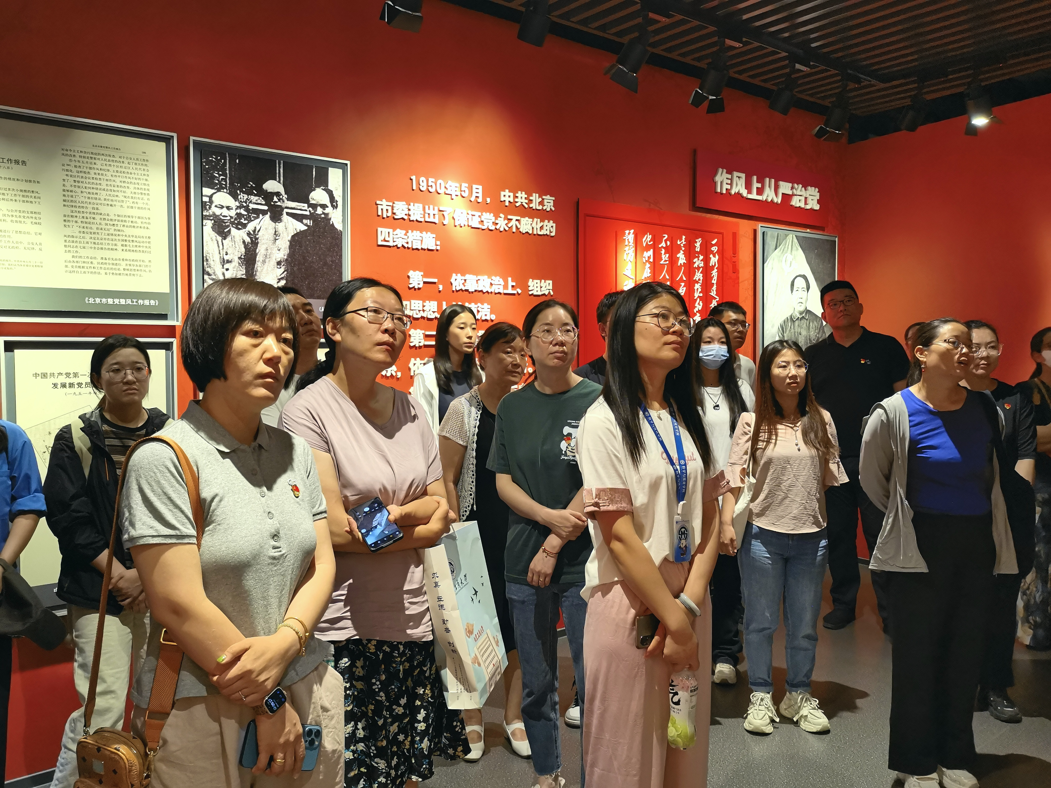 现场教学以历史为脉络,分别从“让历史告诉我们、在从严中发展壮大的北京党组织、信念与立场是党性的根基、牢记第一身份是共产党员党性的基本要求、从严治党一刻不能放松、以‘零容忍’态度惩治腐败、不守纪律不讲规矩党性就无从谈起、担当起历史重任是党性的根本体现”8个专题展现中国共产党人坚守誓言、坚持宗旨、坚定信仰的优良传统。