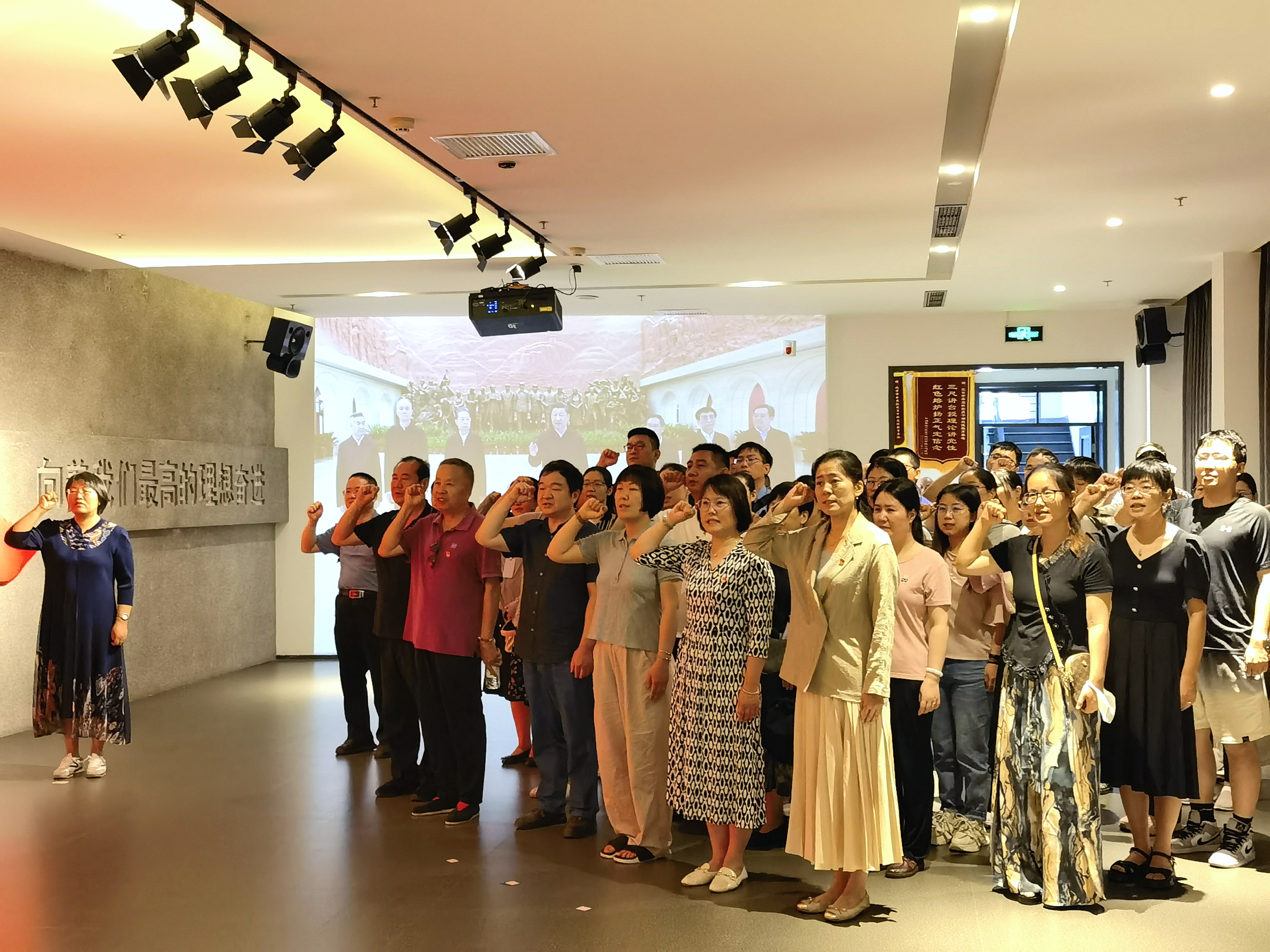 最后,在宣誓大厅,周艳杰带领全体党员面向党旗重温入党誓词。胸前党徽,熠熠夺目,铮铮誓言,诠释初心.