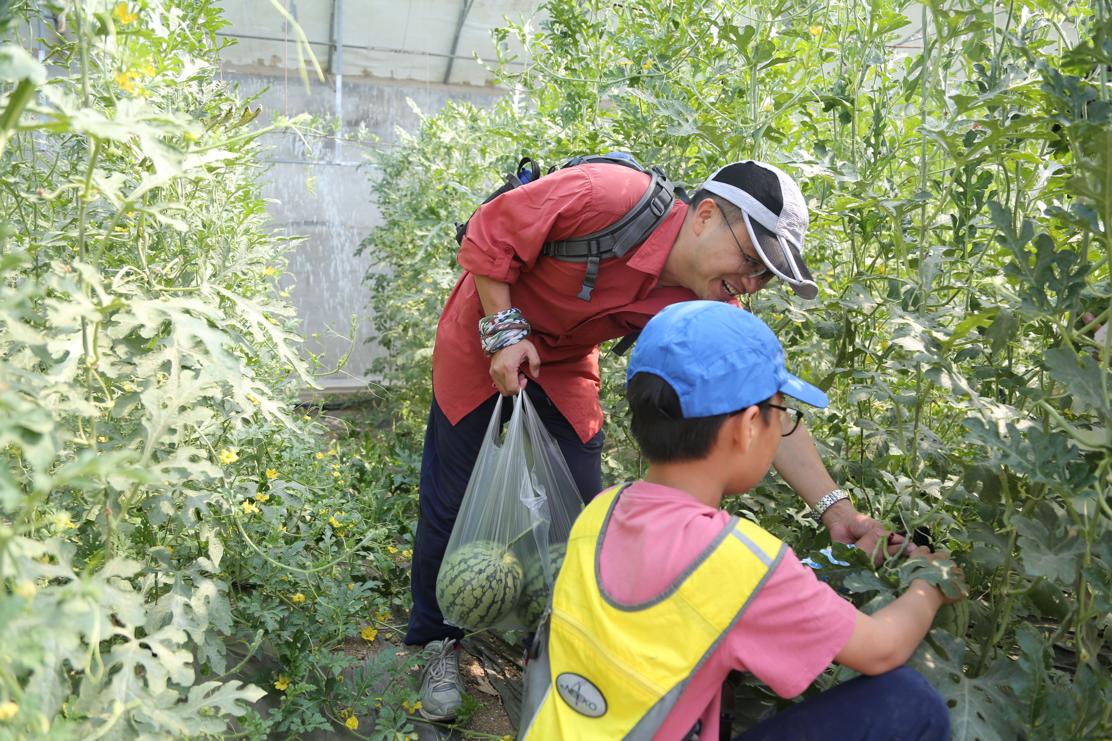 在农场工作人员的带领下,老师们参观了温室大棚和土壤展览馆,了解了有机栽培技术。在采摘现场,大家早已按耐不住兴奋的心情,特别是小朋友,一边采摘一边品尝,劳动的快乐、品尝的喜悦尽展脸颊。在西瓜棚、南瓜地,在苋菜园、西葫芦田,大家尽情地体验着田园风光。